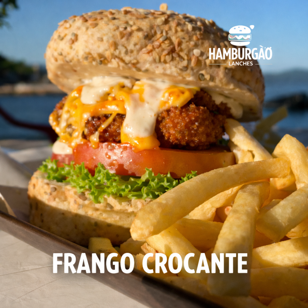 Pão Roseta, File De Sobrecoxa Empanada Crocante, Queijo Cheddar, Alface, Tomate E Molho Ranch.